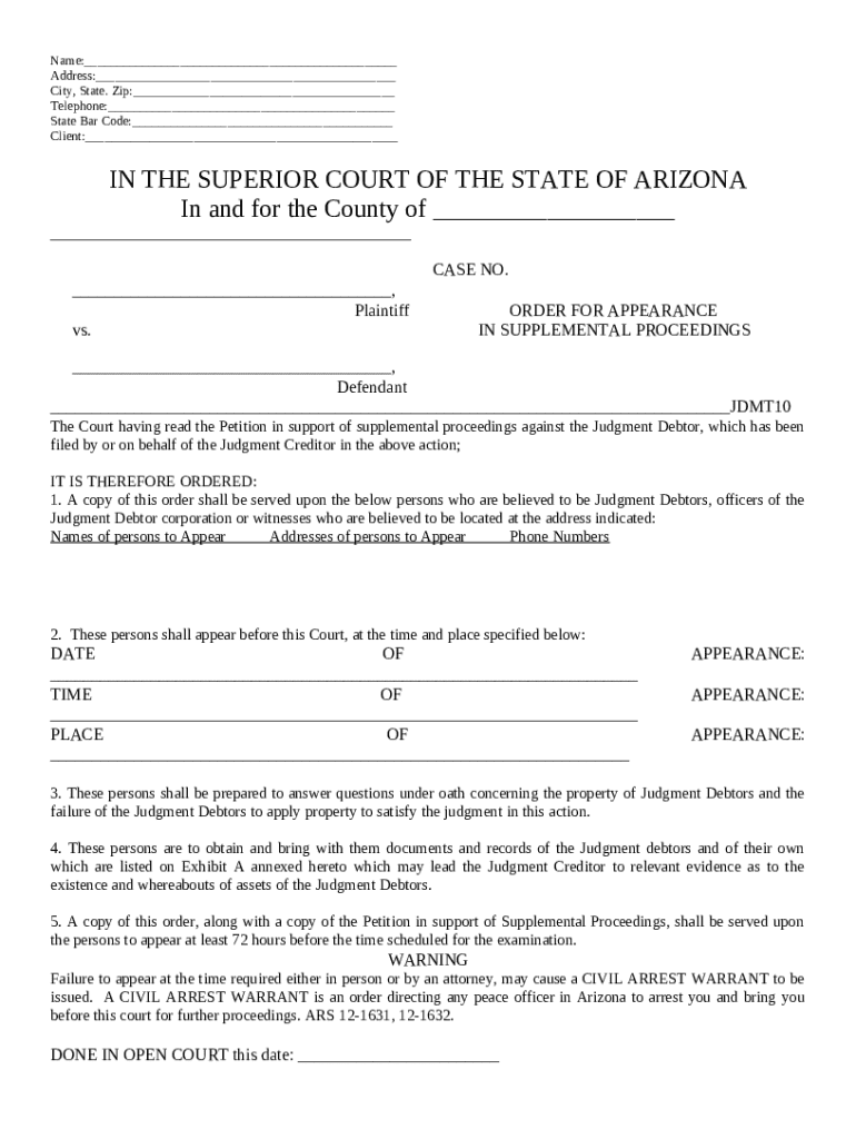 Serving the order for appearance is a vital step in the process, and it must be done correctly to comply with legal requirements. The service notifies the debtor of their obligation to appear in court.