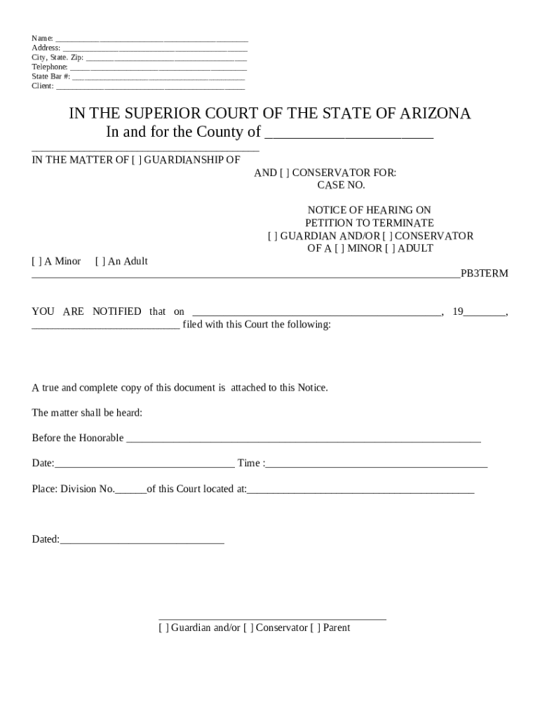 Be aware that notice of hearing procedures may differ significantly from Arizona to other states.