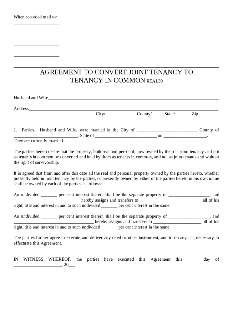 The form legally documents the transition from joint tenancy to tenancy in common.