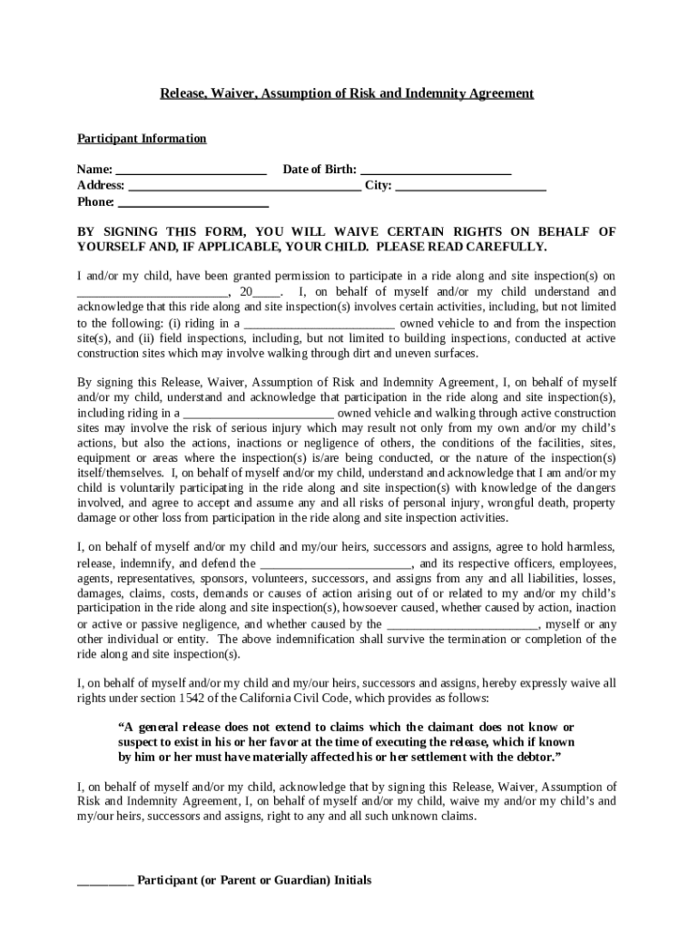 Comprehensive Guide to Release Waiver Assumption of Risk and Indemnity Agreement
