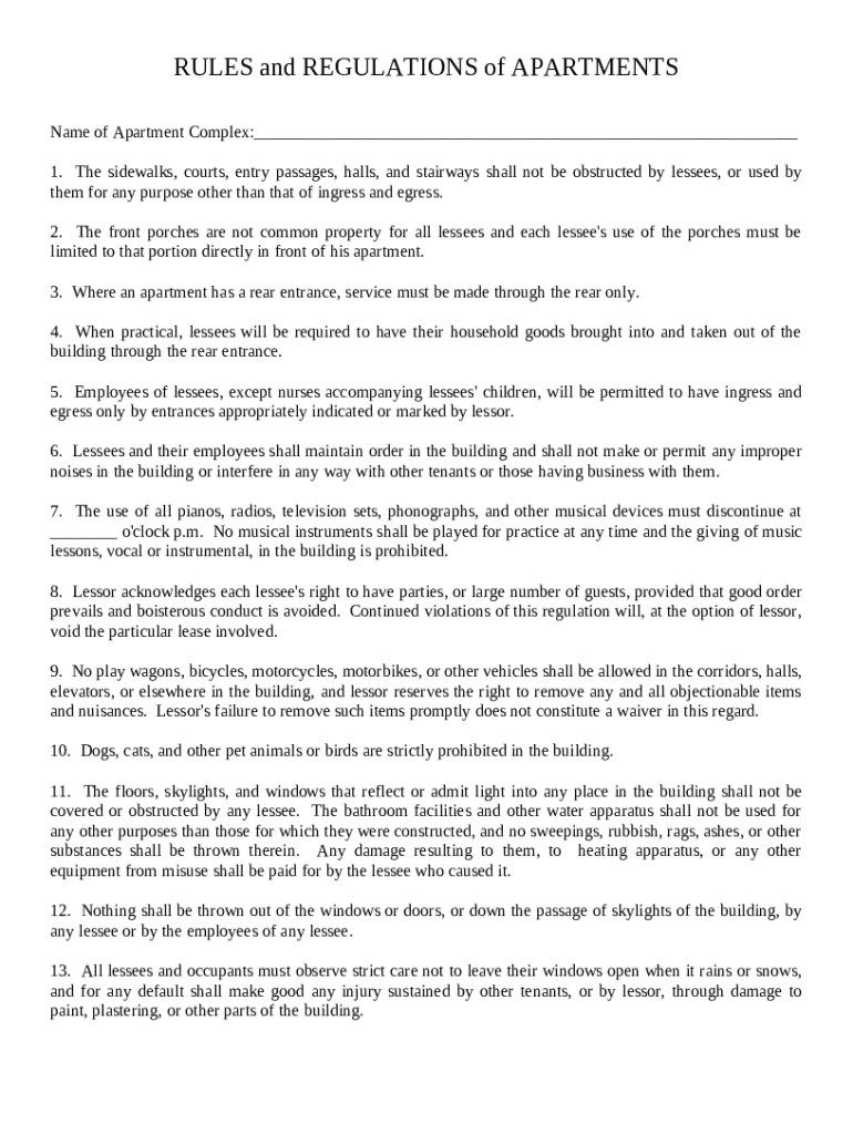 Get the free Apartment Rules template