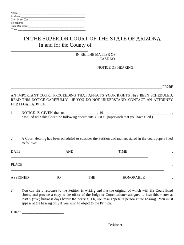 Clearly specify the court name (e.g., Superior Court of the State of Arizona), county, and case number to ensure accurate record-keeping.