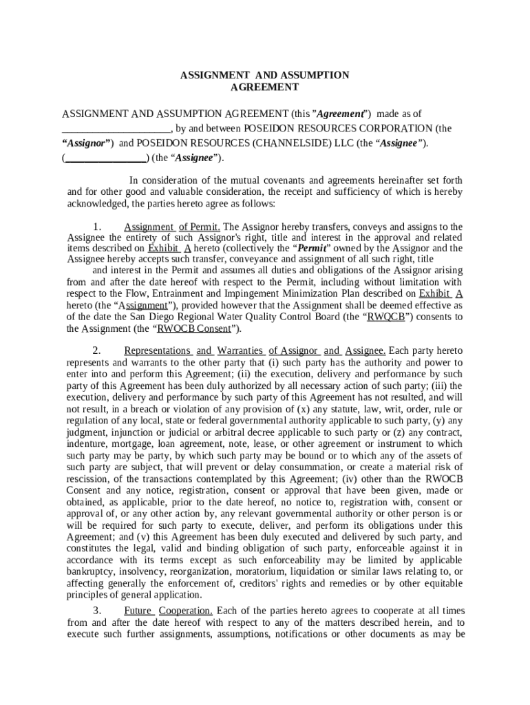 Clearly outline roles and responsibilities of both assignor and assignee.