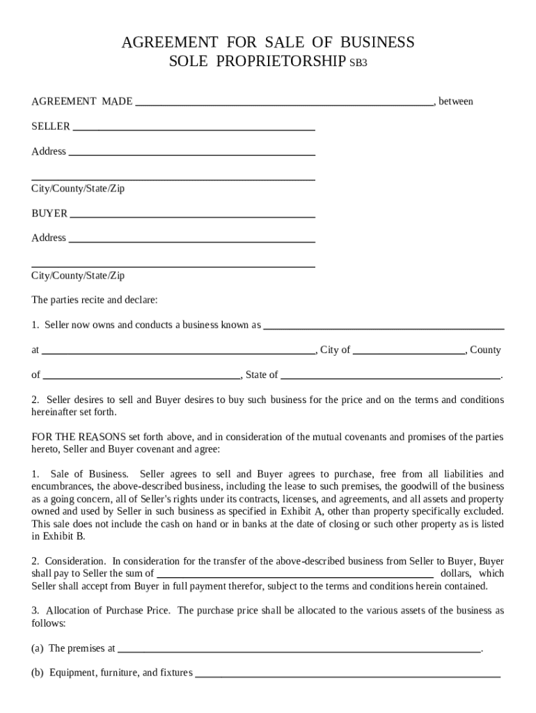 Comprehensive Guide to the Sale of a Business Sole Form