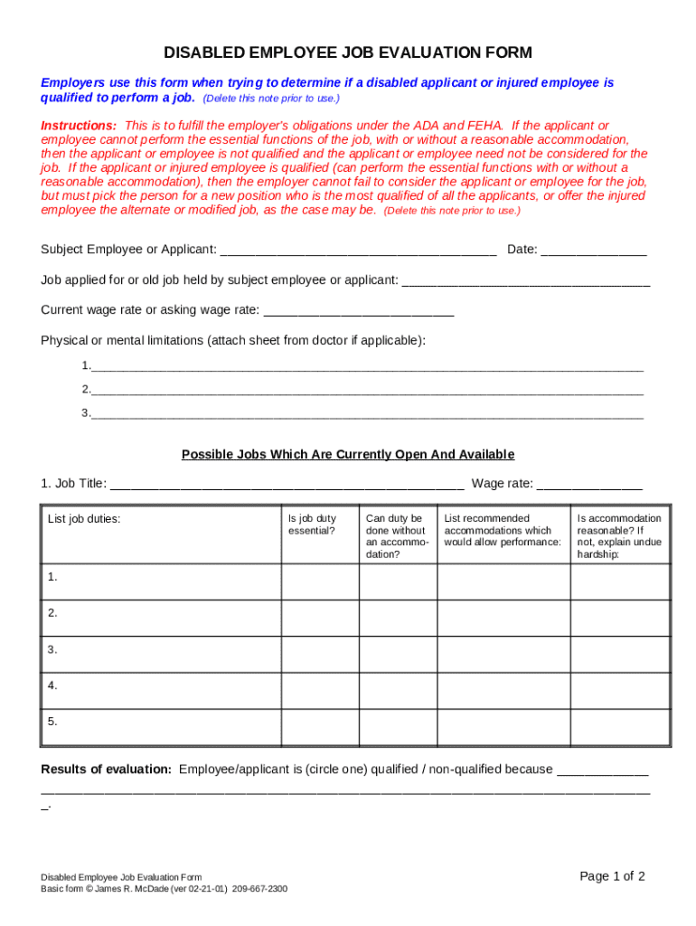 Disabled Employee Job Evaluation Form Guide
