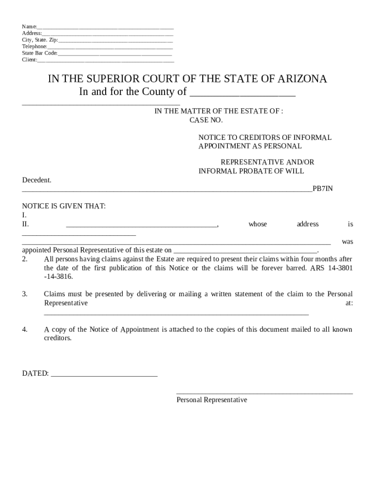 Notice to Creditors in Probate template instructions