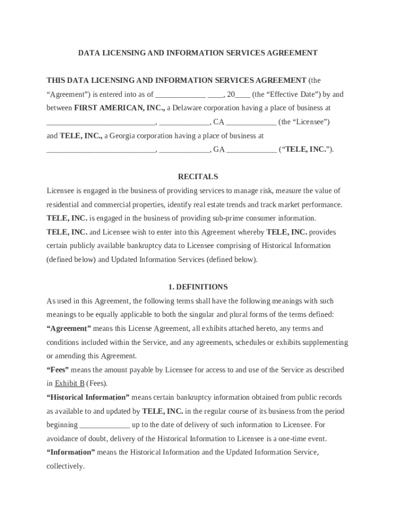 Get the free Data Licensing and Ination Services Agreement template
