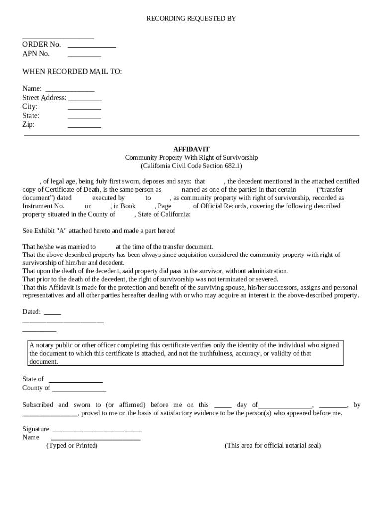 Get the free Affidavit- Community Property with Right of Surviorship template