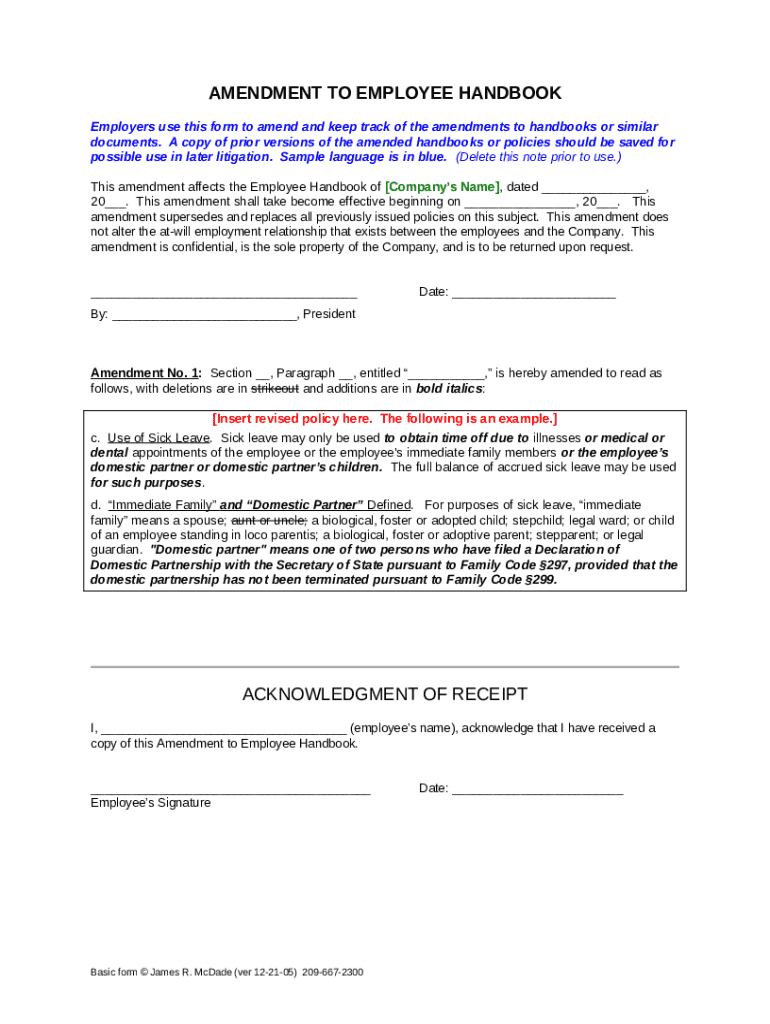 How to fill out the amendment to employee handbook