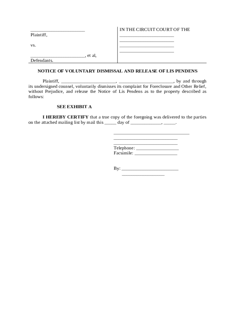 Get the free Notice of Voluntary Dismissal And Release of Lis Pendens template