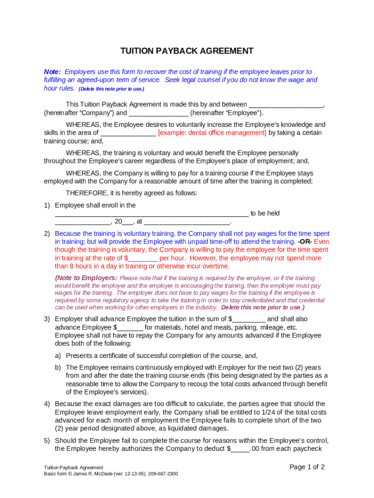 How to fill out the tuition payback agreement template