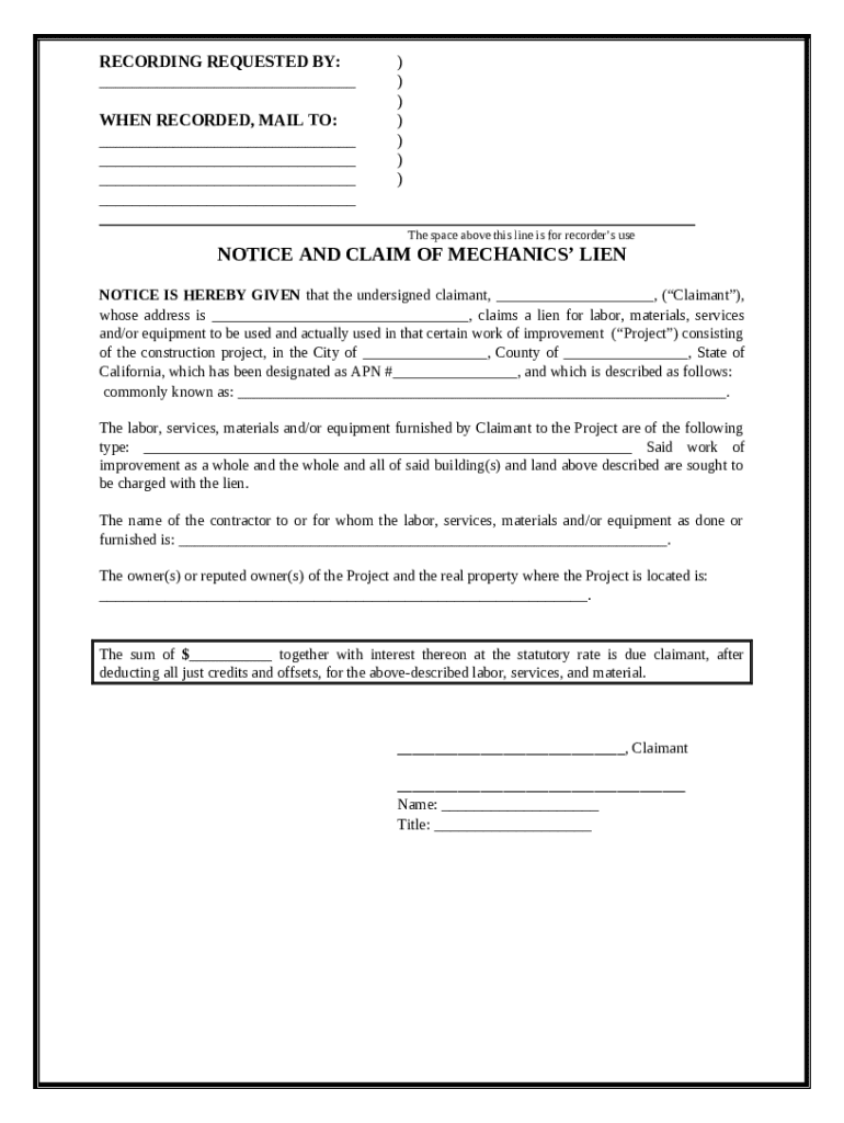 Get the free Notice and Claim of Mechanics' Lien template