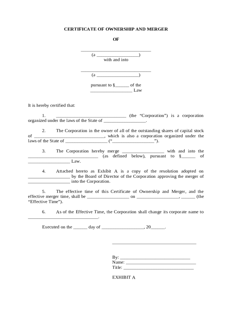 Get the free Certificate of Ownership and Merger template