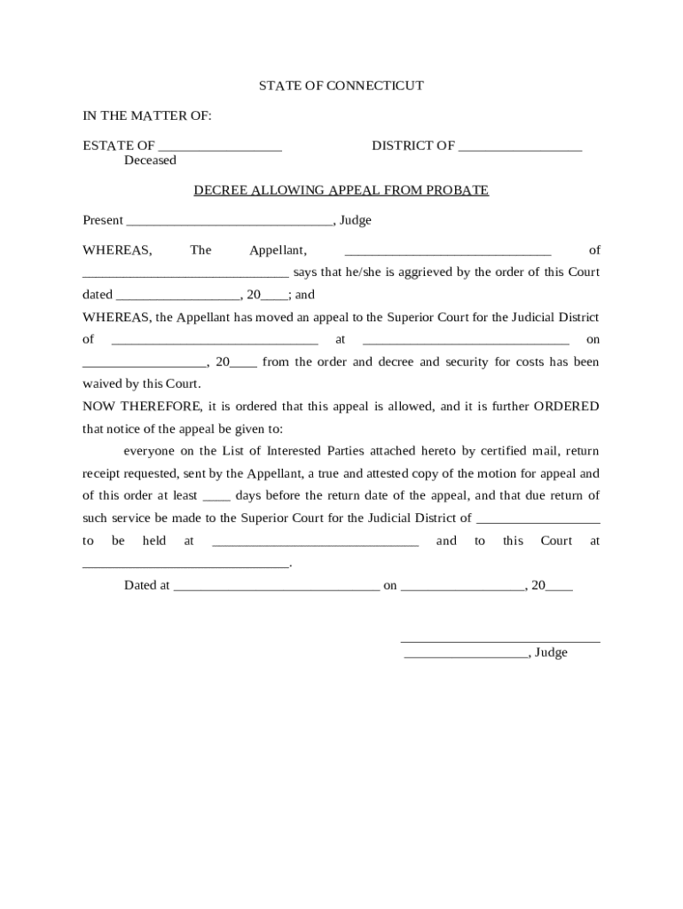 Get the free Decree Allowing Appeal from Probate template