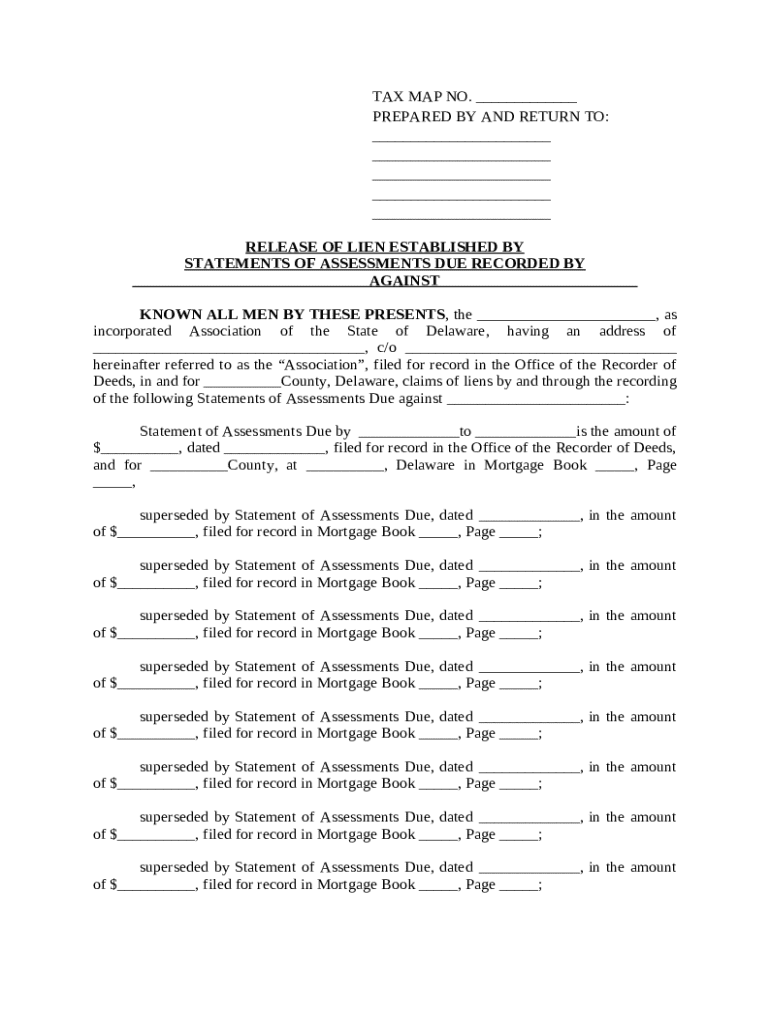 This form releases and discharges a previously recorded notice of lien claim for assessment.