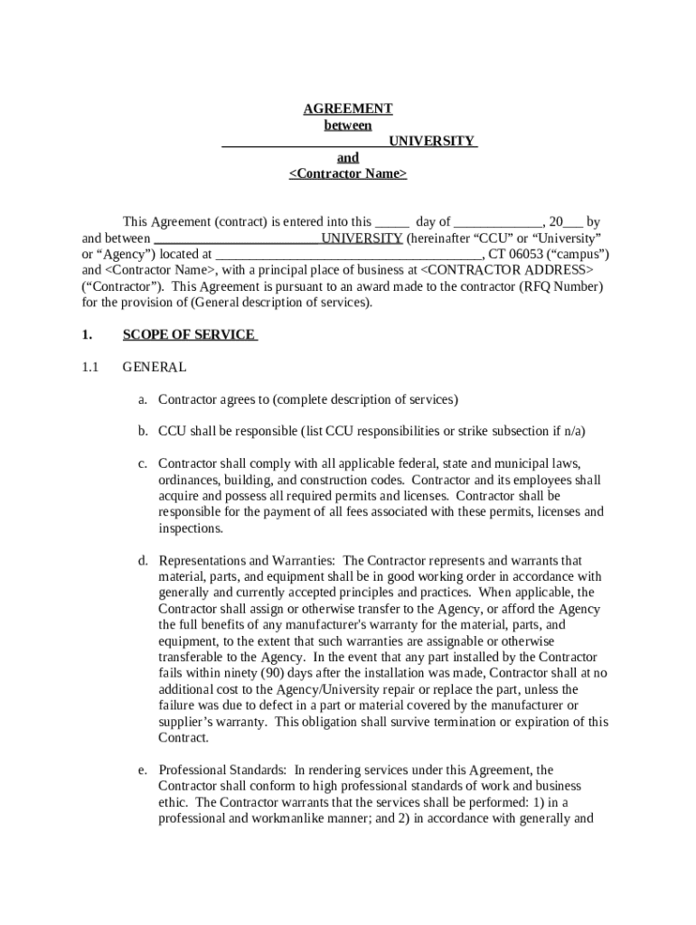 This is a sample Small Project Construction Agreement. This agreement can be used as a template between a University and a Contractor.