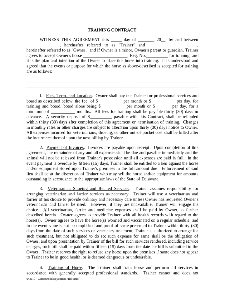Get the free Training Contract - Horse Equine s template