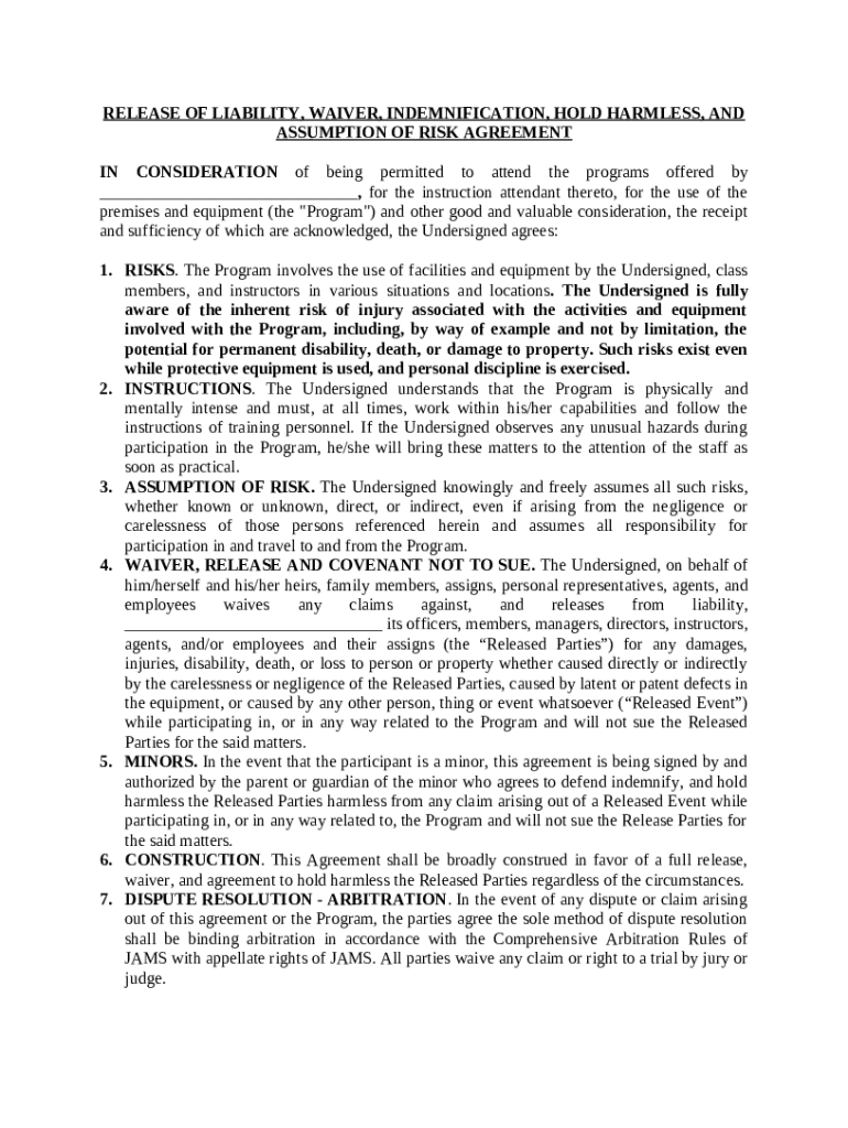 Definition and Purpose - A waiver protects the provider from legal claims arising from injuries or accidents.