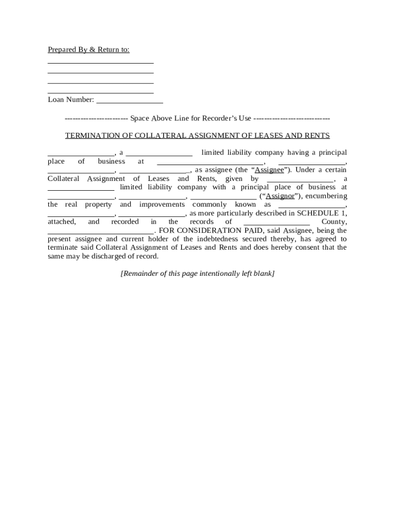 Get the free Termination of Collateral Assignment of Leases and Rents template