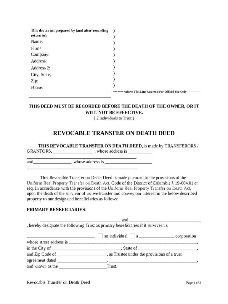 Get the free Transfer on Death Deed or TOD - Beneficiary Deed for Two Individual to a Trust template