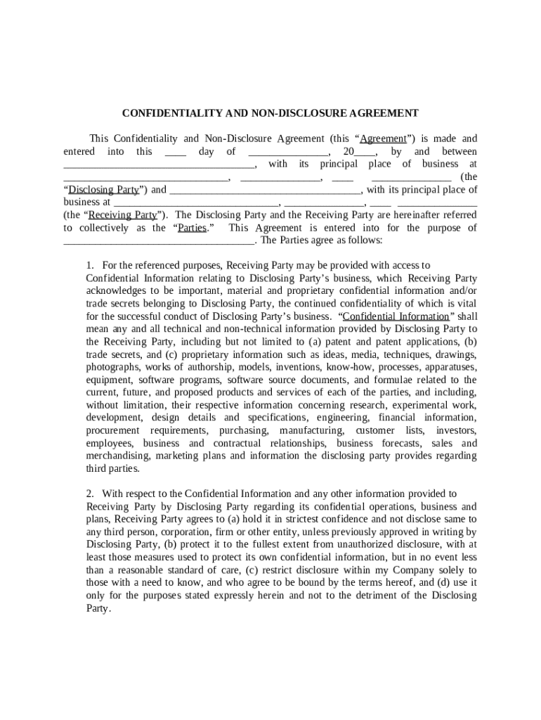 Comprehensive Guide to the Confidentiality and Non-Disclosure Agreement Form