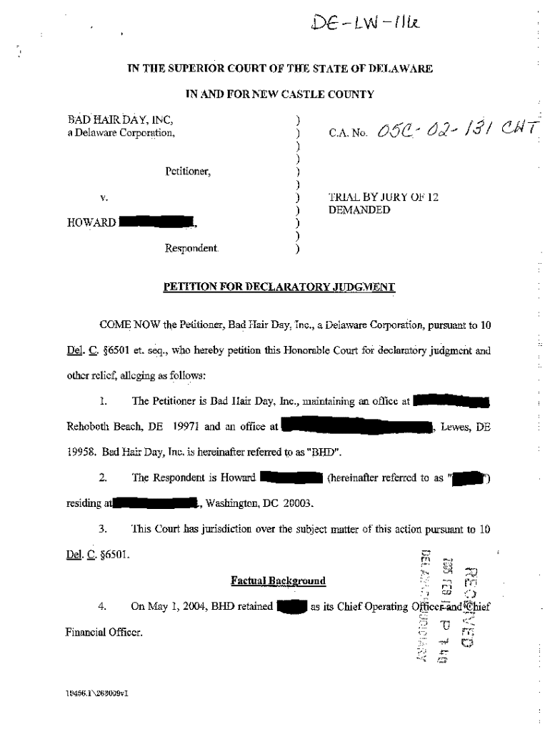 Get the free Petition for Declaratory Judgment regarding Employment Agreement