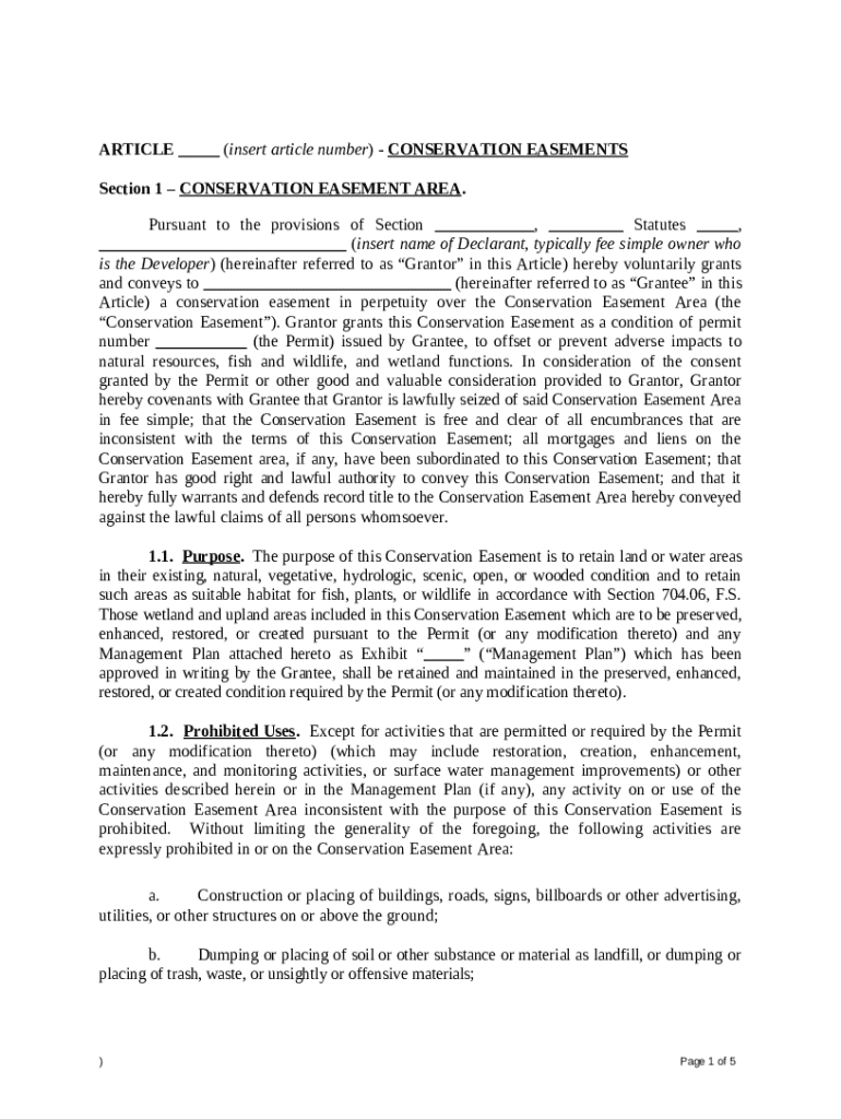Filling out a declaration of covenants form involves understanding the requirements and implications of conservation easements, while ensuring compliance with relevant legal standards.