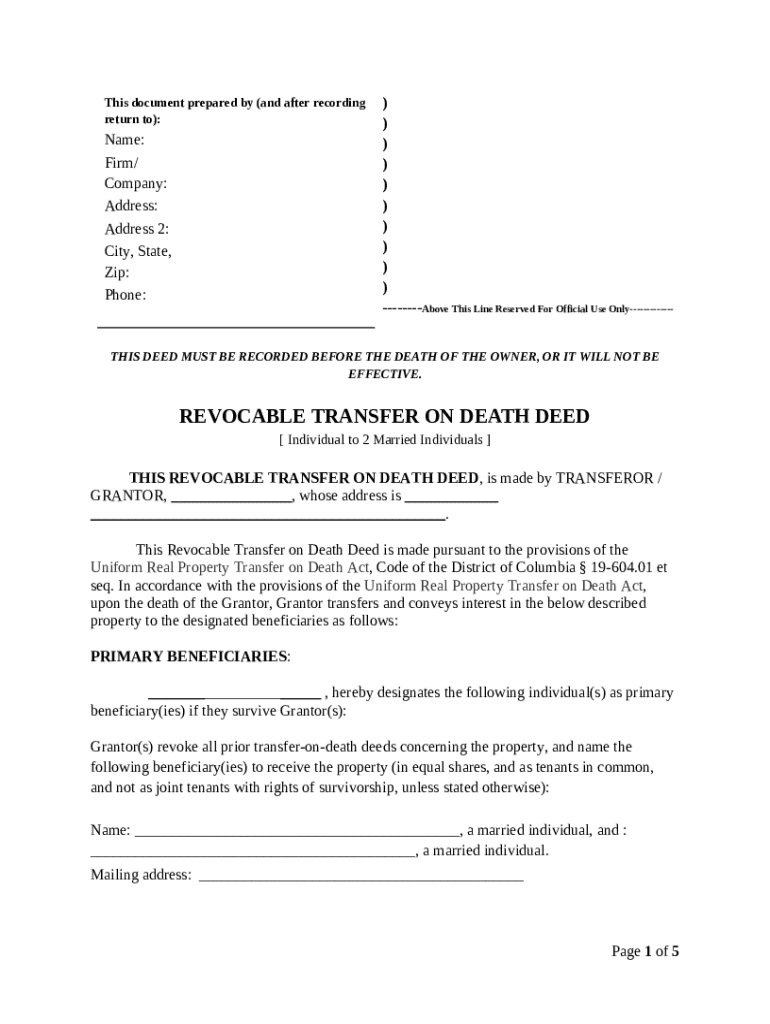 A transfer on death deed (TOD deed) is a legal document that allows a property owner to transfer their real property to designated beneficiaries upon their death without going through probate. This kind of deed is significant because it allows for a seamless transfer of ownership, ensuring that loved ones receive property as intended.