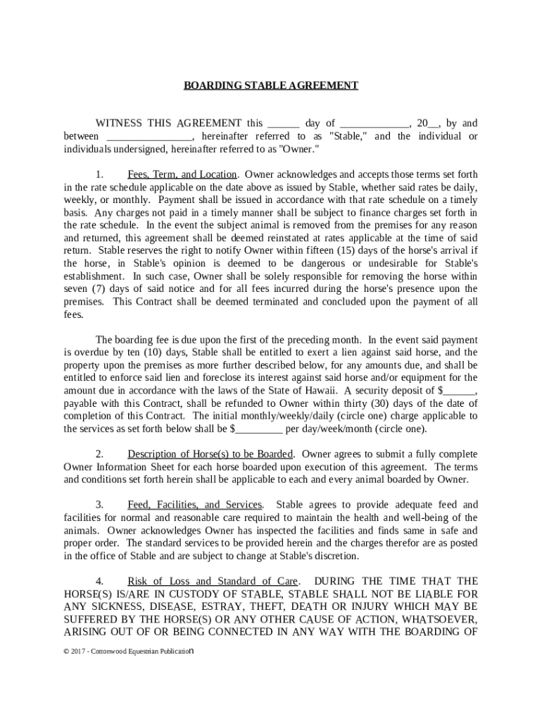 Comprehensive Guide to Boarding Stable Agreement Form