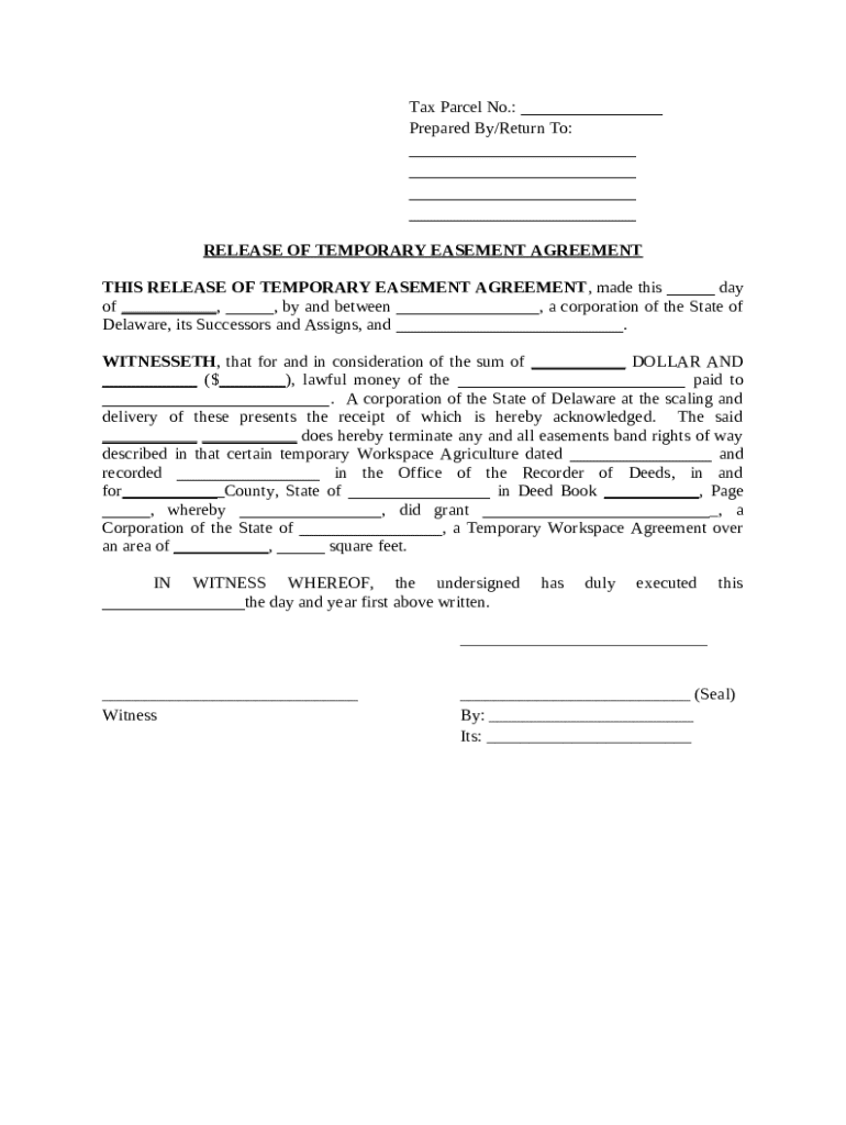 This is a cancellation of a temporary workspace agricultural easement granted by a landowner.