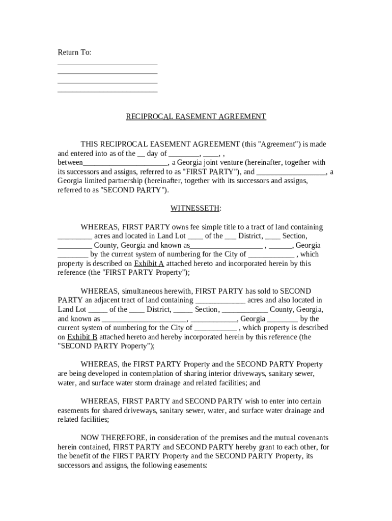 Legal implications can significantly affect how a reciprocal easement agreement is drafted and enforced. Local regulations, particularly in states such as Georgia, may dictate specific conditions and requirements.
