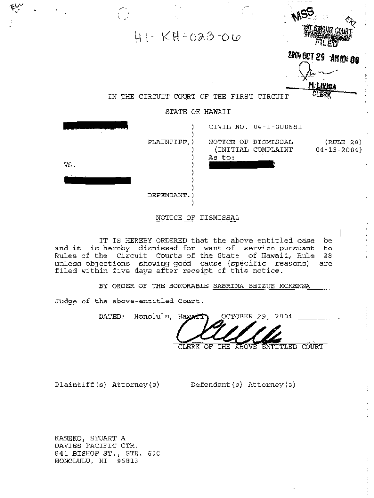 The A06 Notice of Dismissal is a legal document filed to formally terminate a case or proceeding initiated in a court or administrative body.