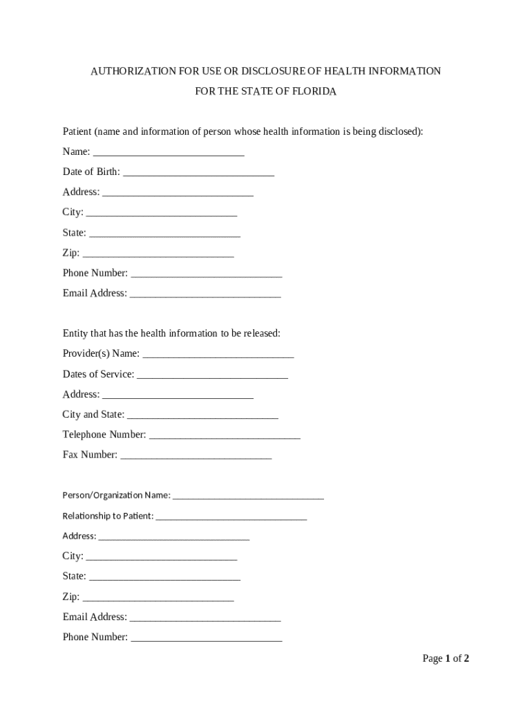 HIPAA authorization form specifically for Florida