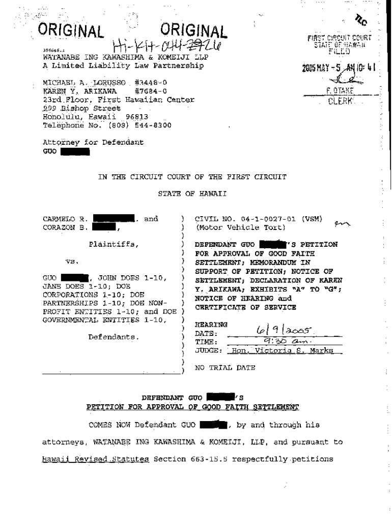 Get the free A26 Defendant's Petition for Approval of Settlement