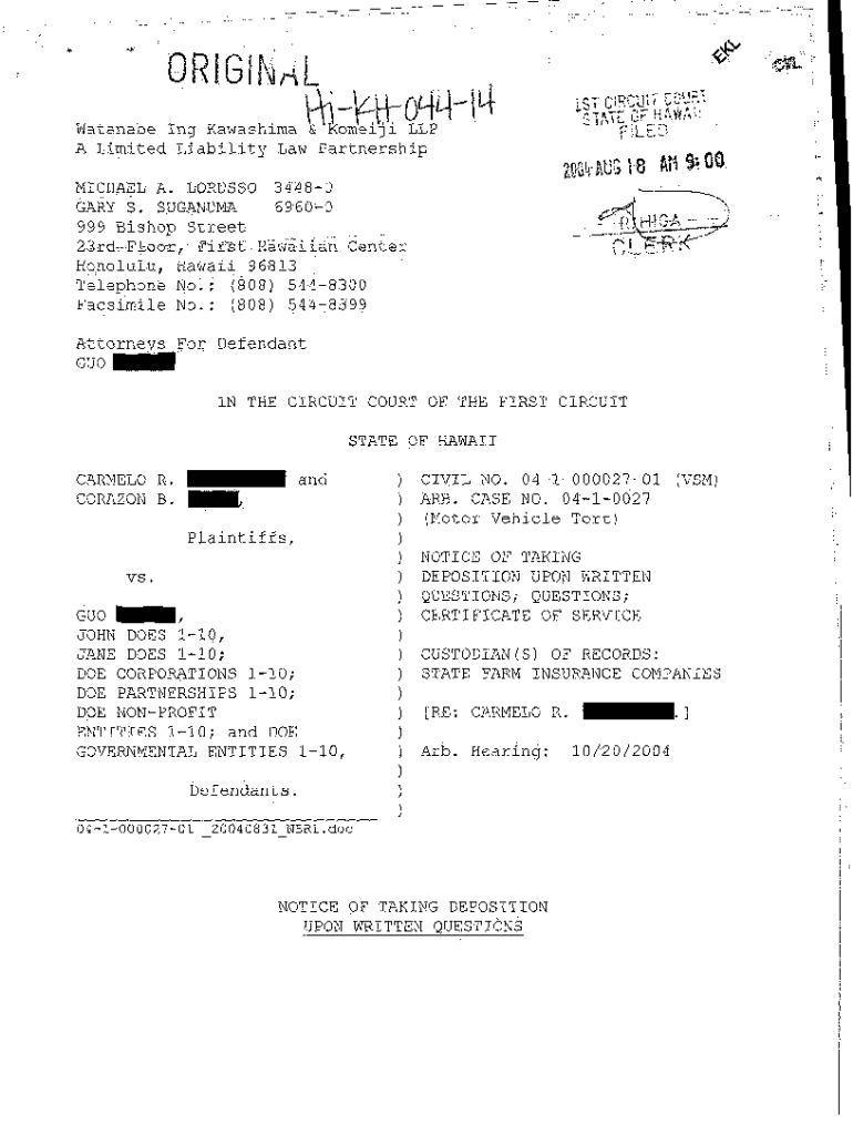 Get the free A14 Notice of Taking Deposition Upon Written Questions, Questions and Certificate of...