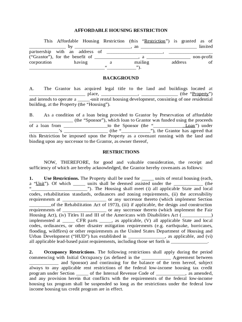 Compliance with affordable housing restrictions is governed by various federal and state regulations. Understanding these requirements is crucial for successful project execution.