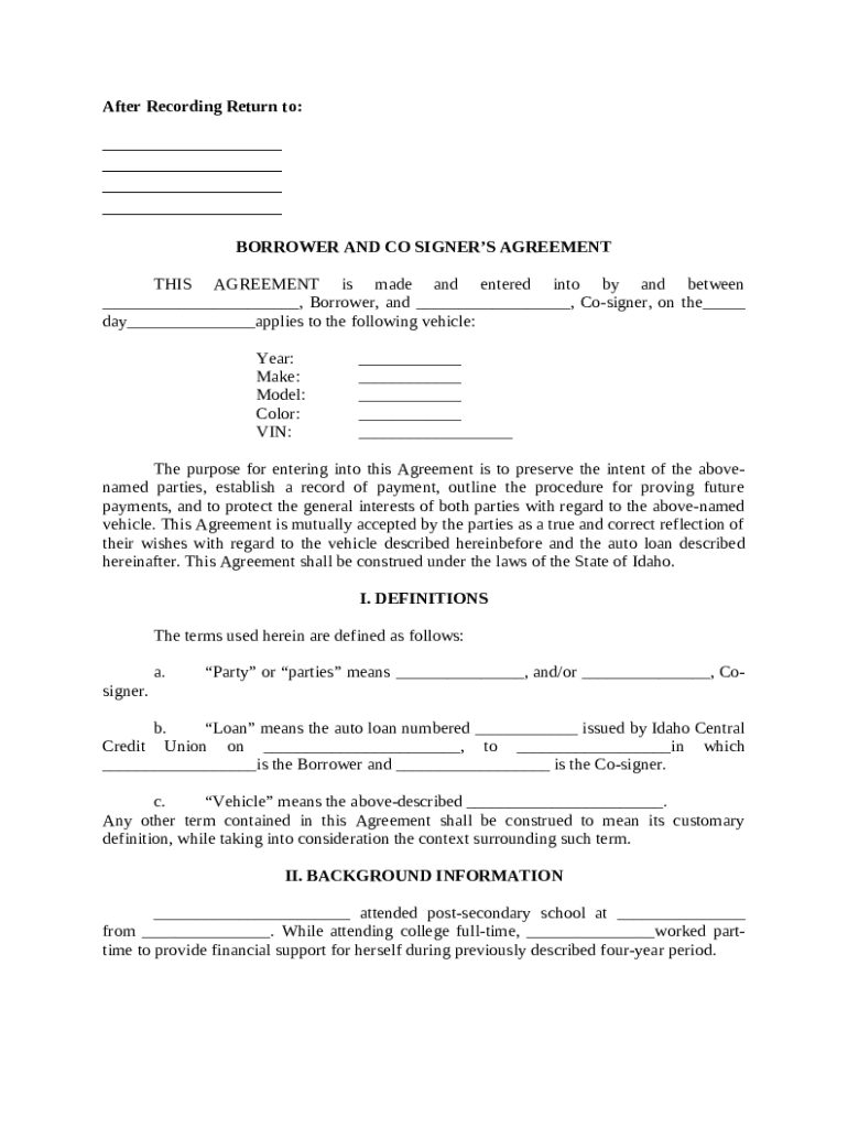 Get the free Borrower and Co Signer's Agreement template