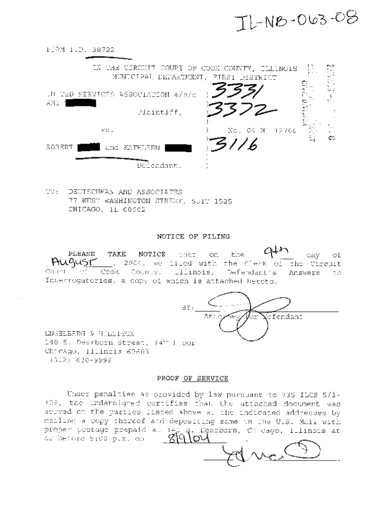 Get the free A08 Notice Of Filing Answer To Interrogatories