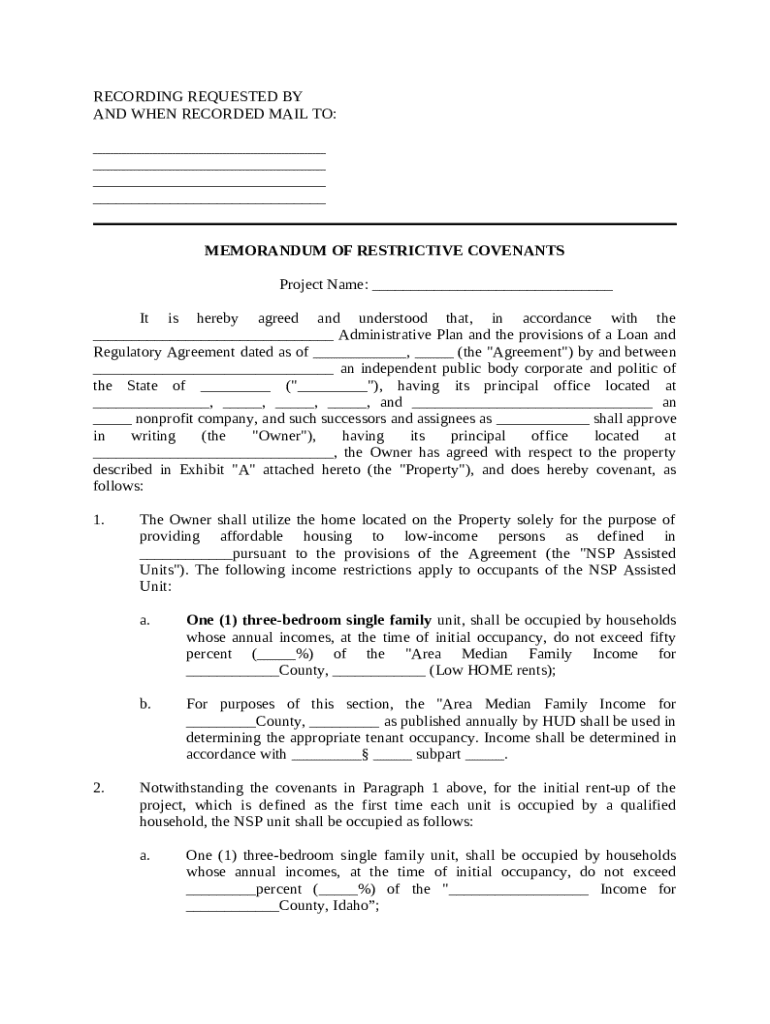 Get the free Memorandum of Restrictive Covenants template