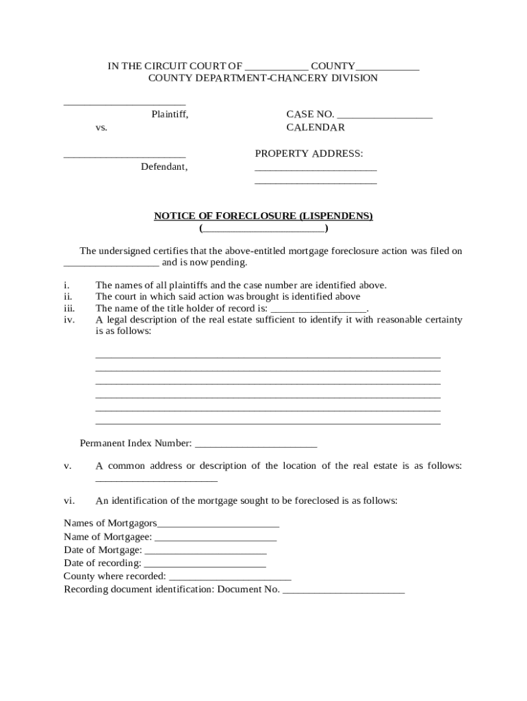Every notice of foreclosure lis form must include specific elements to be valid. These components are crucial for both legal compliance and clarity in communication between involved parties.