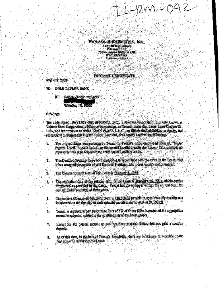 Get the free Estoppel Certificate
