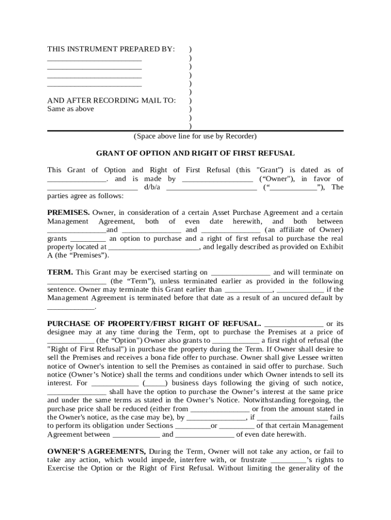 Get the free Grant of Option and Right of First Refusal template