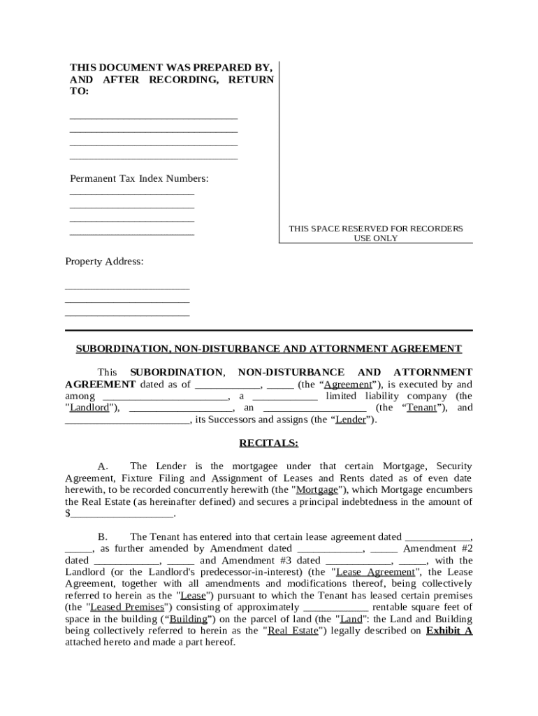 Get the free Subordination, Non-DisturbanceAnd Attornment Agreement template