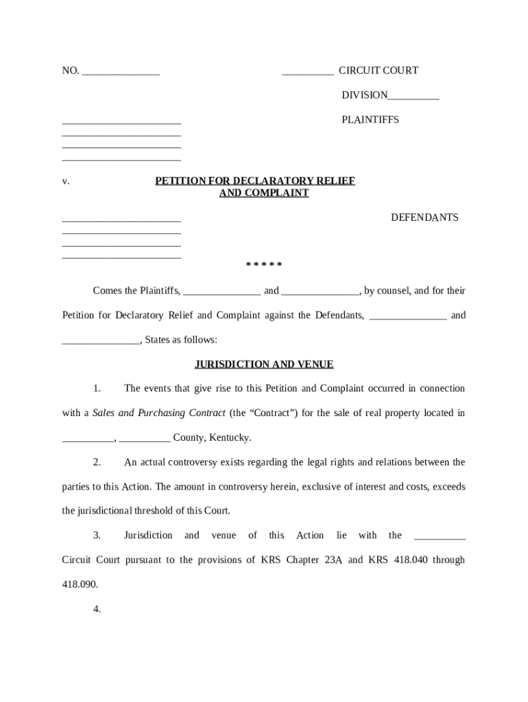 When filing a petition for declaratory relief in Kentucky, understanding the local laws is vital. The Kentucky Revised Statutes (KRS) outline the requirements and stipulations associated with such petitions, ensuring compliance and smoother processing.