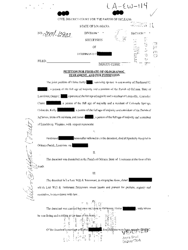 Get the free Petition For Probate Of Olographic Testament, And For Possession