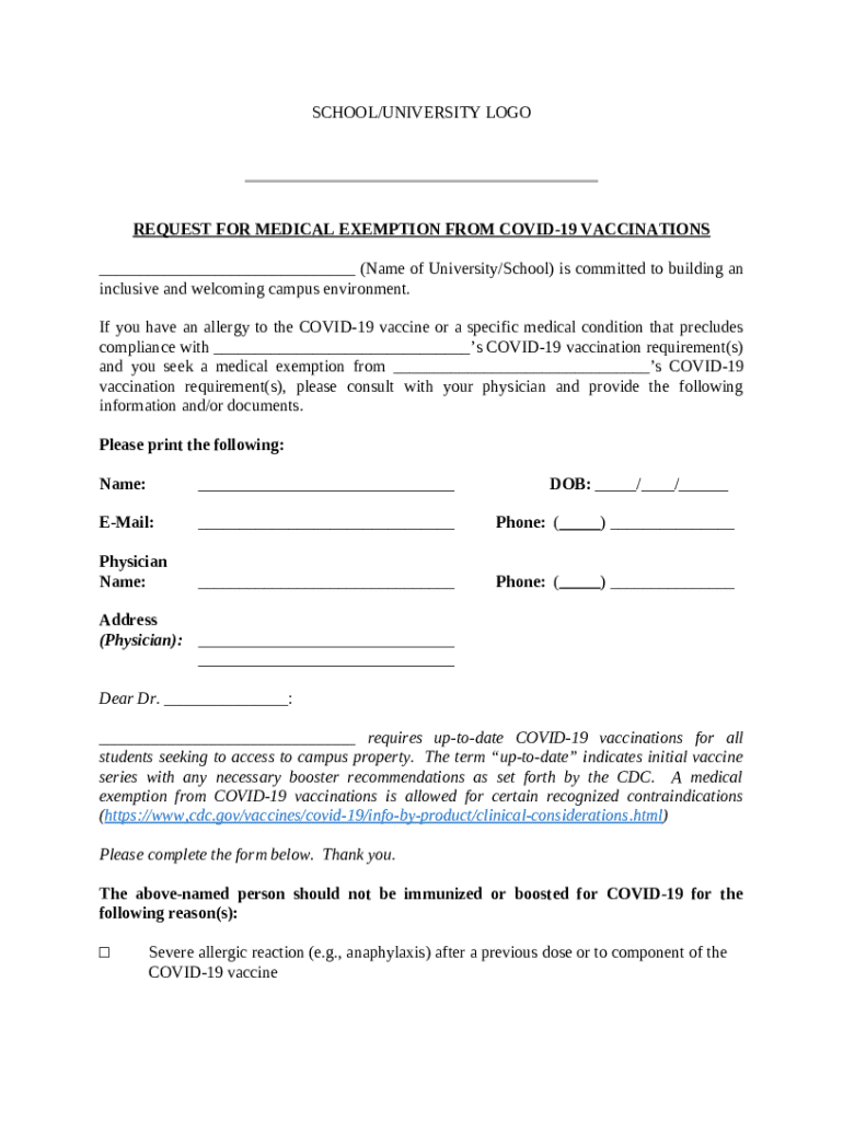 Understanding the request for a COVID-19 vaccination form is crucial, particularly for individuals who may be seeking exemptions due to medical reasons. Educational institutions often have specific vaccination requirements that align with public health guidelines. It's vital to comprehend these requirements to navigate the exemption process efficiently.