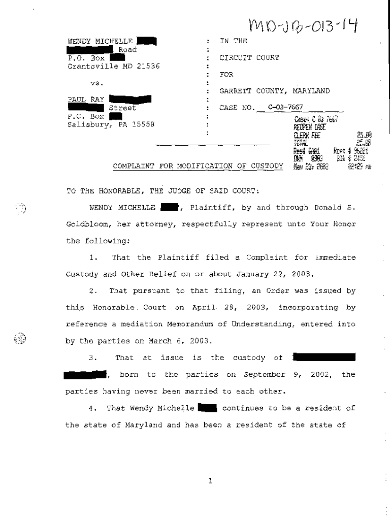 Get the free A15 Complaint For Modification Of Custody
