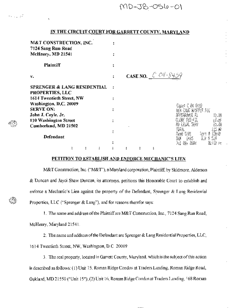 A01 Petition to Establish and Enforce Mechanics' Lien