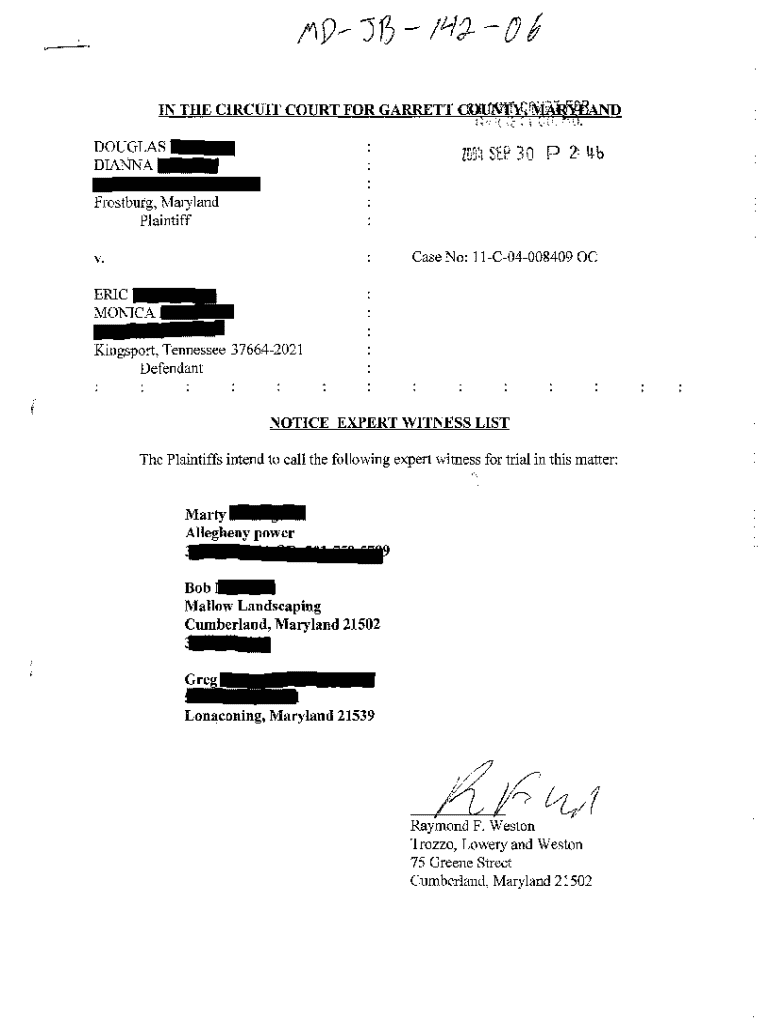 Get the free A06 Notice of Expert Witness List