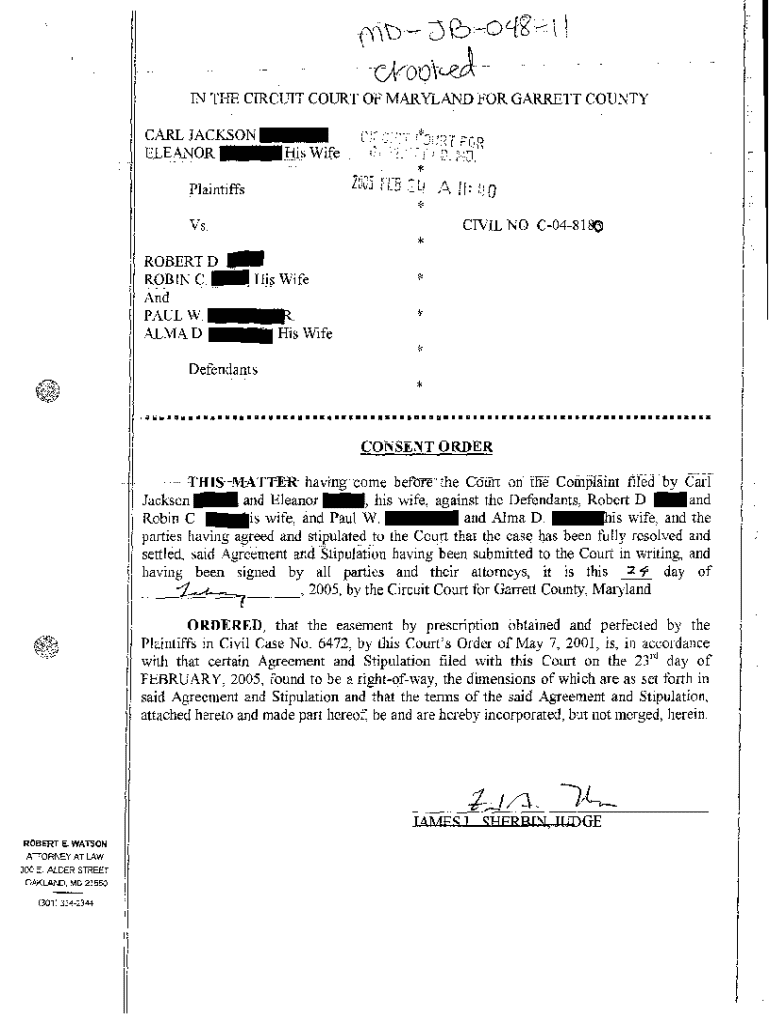 Get the free A11 Consent Order that Easement by Prescription is in Accord